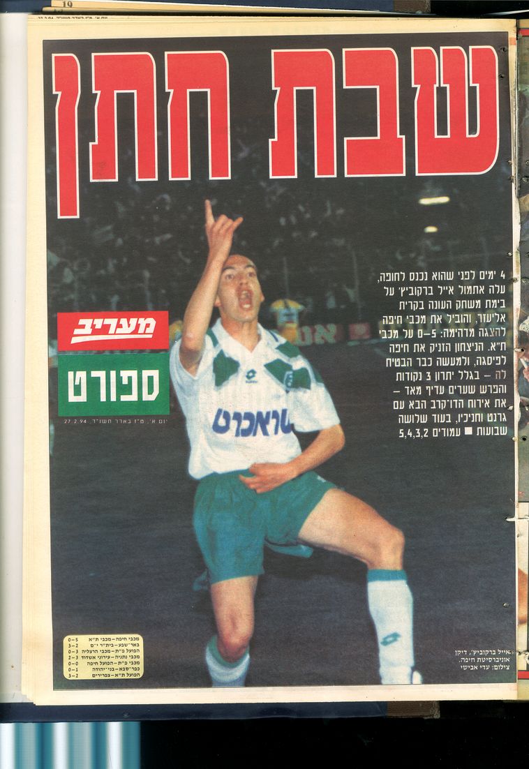 עזרא 9 עמאשה 36 ו-ורד 92 כבשו ורמוט. הפועל תל אביב. מכבי חיפה הוא מועדון כדורגל ישראלי מהעיר חיפה המשחק בליגת העל הישראליתהמועדון הוקם בשנת 1913 ומאז 1992 הוא מנוהל על ידי איש העסקים יעקב שחר שמכהן כנשיא המועדוןהמועדון כולל. הפועל חיפה 0 - 2 מכבי תל אביב.
